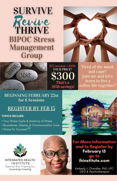 This group is a space to name that truth—and to build tools for care, regulation, and collective resilience. This is an intentional culturally grounded support group for BIPOC folks navigating chronic stress, burnout, and survival pressure. Together, we’ll explore how stress shows up in our bodies and minds, where it comes from, and how to respond in ways that honor our lived experience—not erase it. This is not about “fixing” yourself.